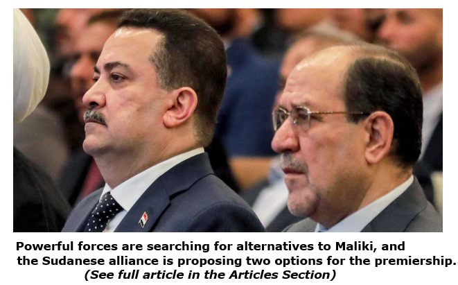 The news today evolved around two main articles. Let’s take a peak at the first one titled “POWERFUL FORCES ARE SEARCHING FOR ALTERNATIVES TO MALIKI, AND THE SUDANESE ALLIANCE IS PROPOSING TWO OPTIONS FOR THE PREMIERSHIP”. Some of the active forces within the Coordination Framework are still looking for a candidate to replace Nouri al-Maliki for the position of the next government. While the Framework confirmed its rejection of renewing the mandate of the outgoing Prime Minister, Mohammed Shia al-Sudani, from the Reconstruction and Development Alliance. Currently these are the top two contenders. Will a third contender be exposed? What is this third contender like?