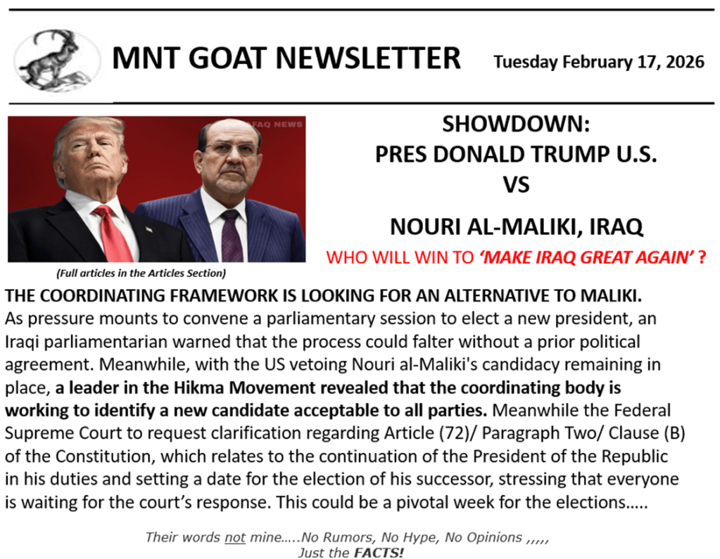 Remember I said in my earlier Newsletter that Maliki has not given even a political speech as to what he intends to do for Iraq to make it great again. Does this strike yu strange? Yes, not a peep about what he plans to do as prime minister should he get elected, yet he was the top candidate for the nomination of the Coordination Framework. Something funky going on here…. ☹ Instead, we find more and more negative comments from him trying to convince the people of Iraq he is going to be the savior of Iraqi sovereignty as he pushes to keep the Iranian militia (PMK) forces in Iraq and keep them armed. Yes, anything to show he is more powerful than president Trump of the U.S. This is the picture he tries to paint. Everything is about Trump being the big bully to Iraq. Yes, its always about Trump and again we see Maliki not taking responsibility for the mess he created for Iraq during his first eight years. Oh… but Iraq is not living up to its constitution either, is it? Foreign intervention is not allowed in their elections either like in the U.S. and so what about this point with Iranian interference? This is why Maliki has no arguement to make about the militia staying in Iraq and just pushes the blame back to the Coordination Framework as to why he is the candidate. He can’t justify why he should be the next prime minister and either can the largest block that nominated him. Folks, this is illogical reasoning. The reasoning of Maliki and someone that is not in his right frame of mind and someone who is even worthy to be prime minister of the great country of Iraq. Yes, this corruption continues in Iraq.